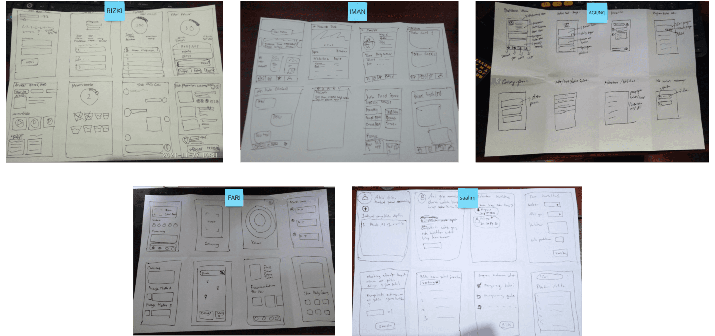 We got a A4/A3 paper, The paper will be folded/divided into 8 parts. we were given approximately 15 minutes to describe 8 different variations of ideas/solutions. After the idea or solution is created, then each of us presents their idea. here some crazy8 that we draw.