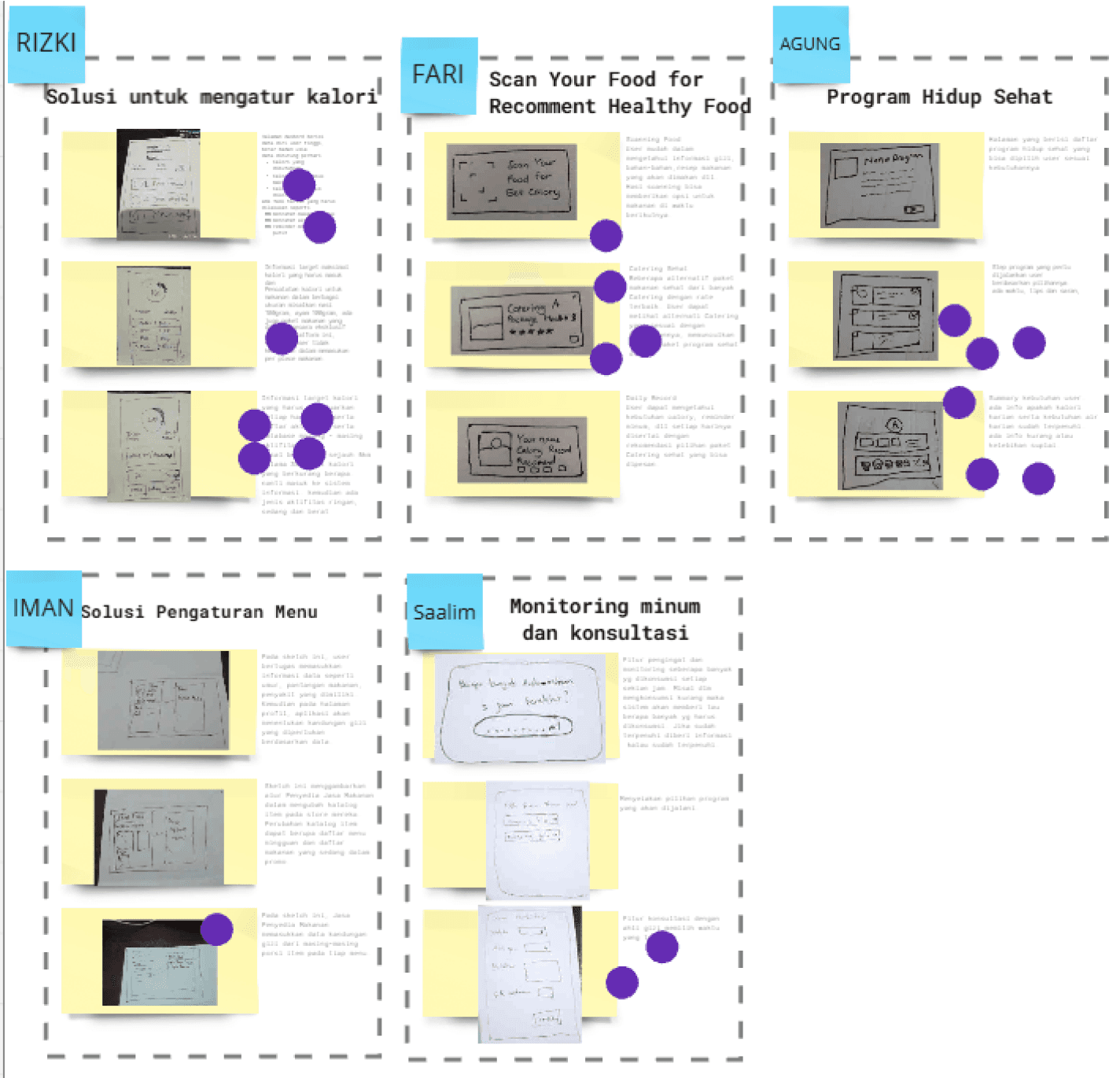 After voting on the ideas in Crazy 8s, the team will work together to create a final idea whose contents can be taken from the collection of ideas in the Crazy 8s session into 1 ideal flow. After the final idea is created, then the team representative will present the final idea again.