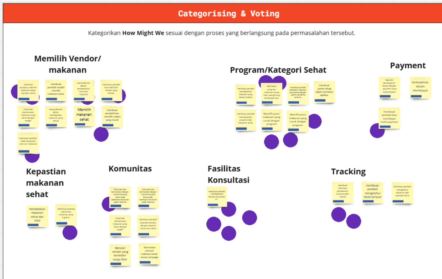The next step is to determine the sprint target/focus based on the HMW we get. This is very important to ensure that our sprint runs according to plan.