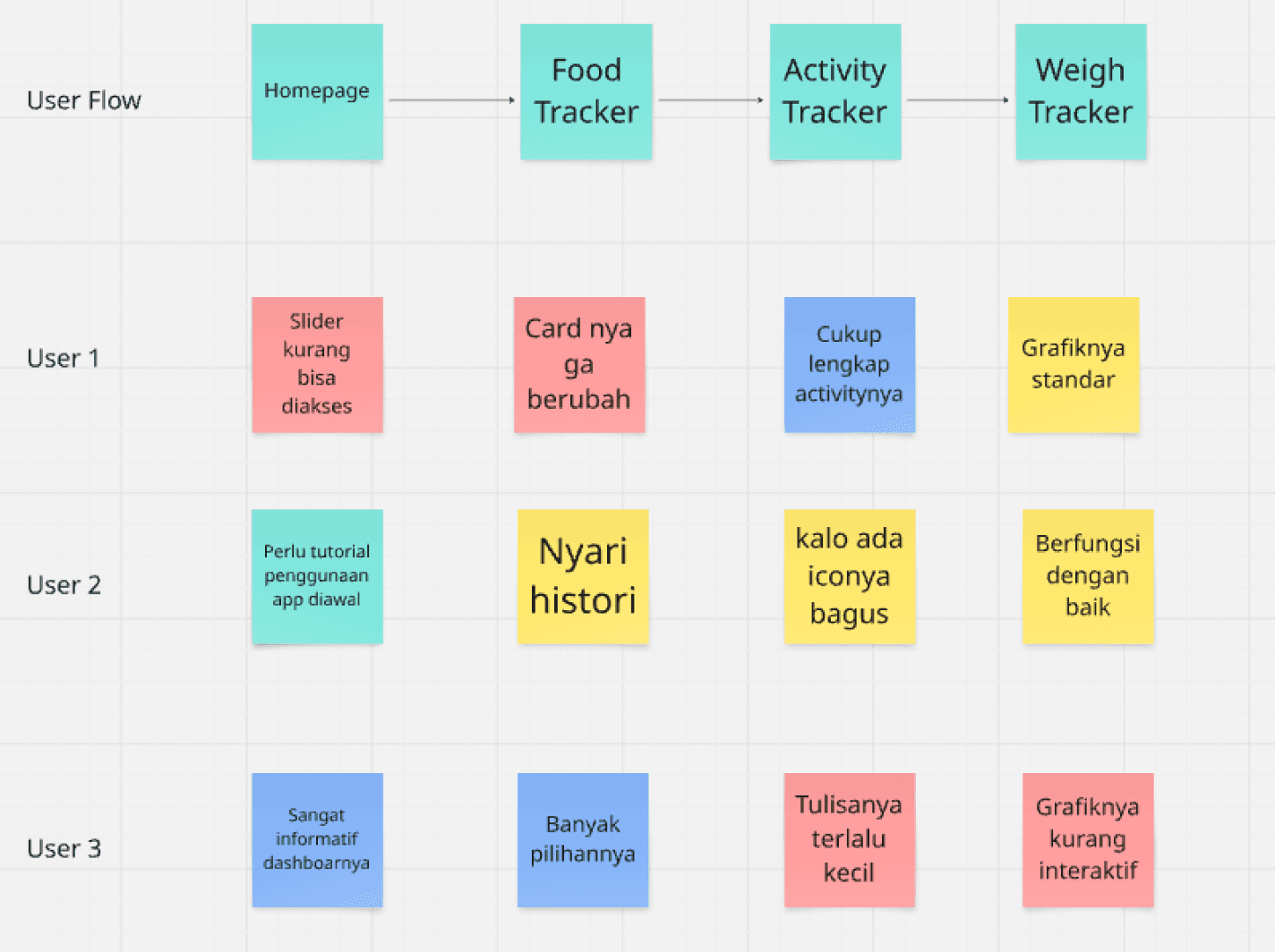 We record user reactions to the prototype using colored Sticky Notes (Red for negative, Blue for positive, and Yellow for neutral). After the user completes the task, when we learns and digs for more information from the user. we ask if they understand the purpose of the tested task, where the parts make them confused, how was the experience when they interacted with the prototype, etc. that we can improvise.