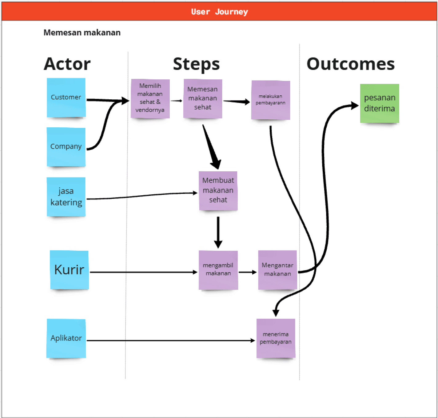 Then, we wirite user journey. This contains the flow that users go through while using our product to achieve their goals.