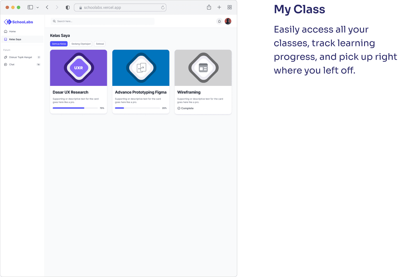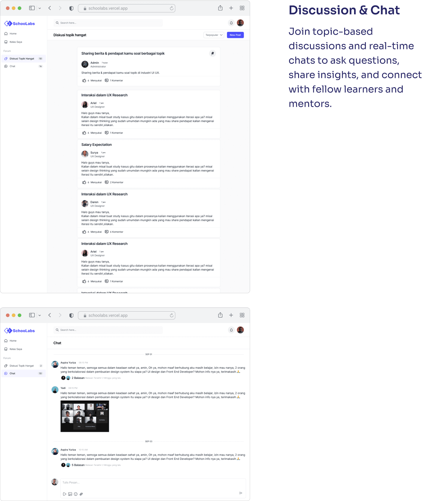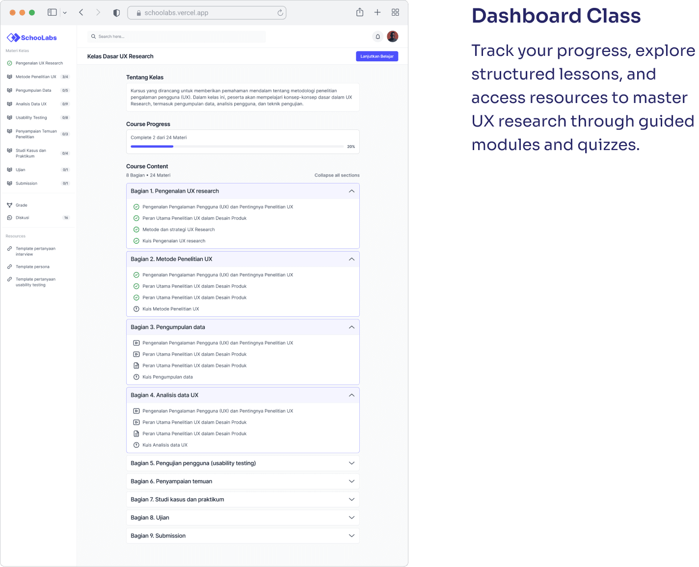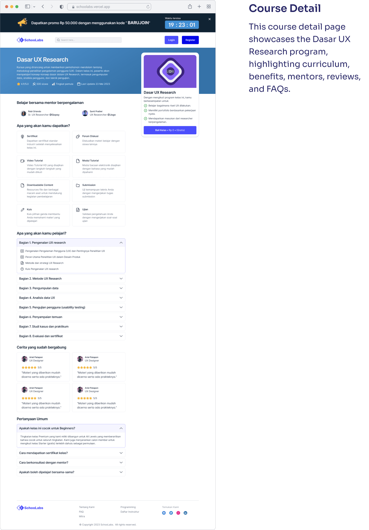 Schoolabs successfully launched as a learning platform for both designers and developers, offering structured, hands-on courses in UX, UI, and coding. With features like progress tracking, assignment submissions, and community discussions, the platform encourages active, project-based learning.